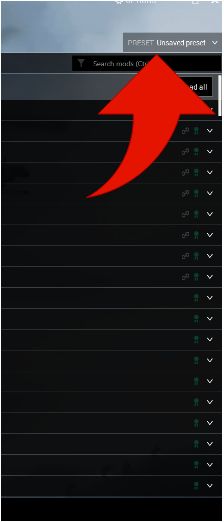 From the mod selection screen, select the preset dropdown menu in the top right-hand corner: